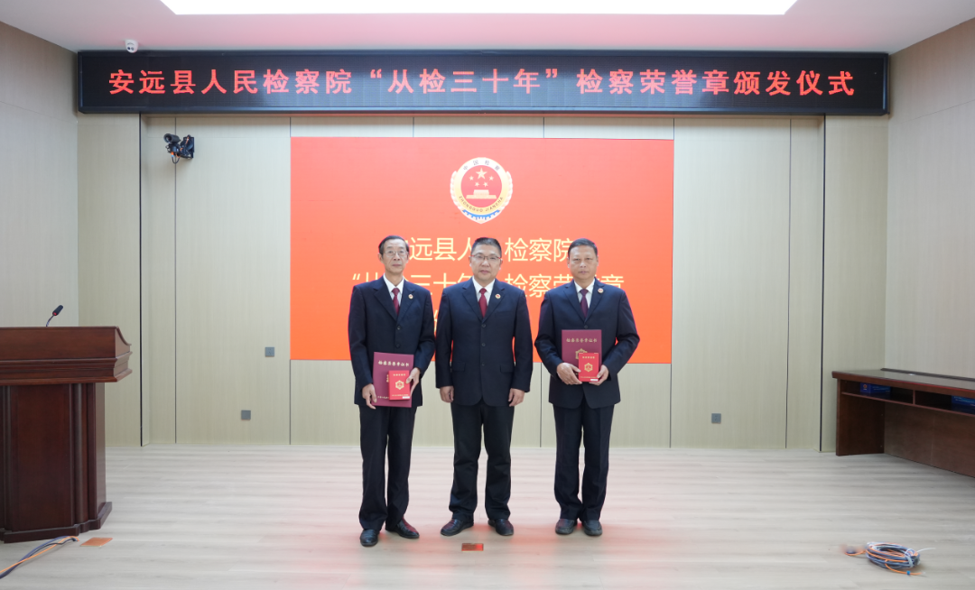 12月4日,安远县人民检察院举行宪法宣誓暨“从检三十年”检察荣誉章颁发仪式。会议组织新任检察官及新进人员进行宪法宣誓,并向谢炳春、何谷峰两位从检三十年的同志颁发荣誉章。两位老同志深情回顾了检察生涯并发表了工作感悟,新任检察官陈晋、卢焱表达了传承信念、履职尽责的决心。王鹏检察长向获得荣誉的同志致以敬意,并对全院干警提出坚定信仰、勇于担当、严守底线三点希望。活动进一步弘扬了宪法精神,传承了检察职业荣誉,激励全院干警不忘初心、忠诚履职。