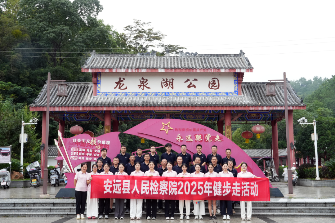 为庆祝中华人民共和国成立七十六周年,弘扬爱国主义精神,丰富干警文体生活,增强队伍凝聚力与向心力,安远县人民检察院于国庆前夕,组织干警前往风景秀丽的龙泉湖森林公园开展健步走登山活动。