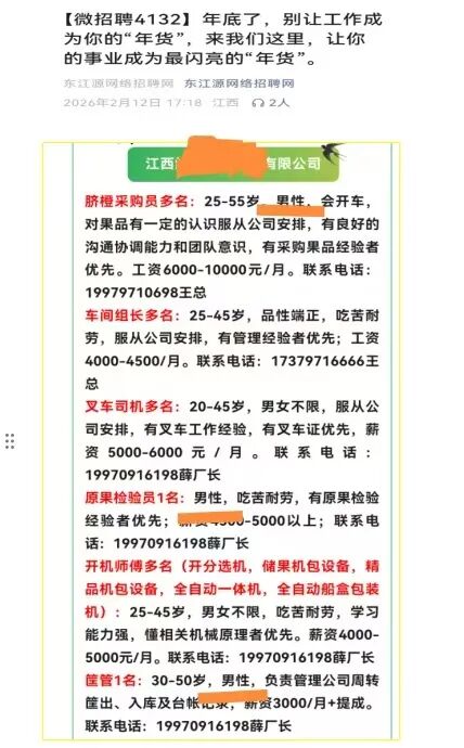 今年1月,安远县检察院在开展妇女权益保障公益诉讼监督中发现,辖区内部分企业在网络平台发布的招聘信息里存在“要求男性”、“男性优先”、“已婚”等歧视性内容,且相关岗位并不属于《女职工劳动保护特别规定》中规定的女职工禁忌从事的劳动范围。上述行为既侵害了女性的平等就业权,同时破坏了公平竞争、和谐有序的就业环境,损害了社会公共利益。依据《中华人民共和国劳动法》等相关规定,该院于2026年2月26日依法向有关行政机关发出检察建议,建议依法履职,对相关网络招聘信息开展检查并作出处理,同时加强日常监管,强化部门协同联动,切实维护妇女平等就业合法权益。