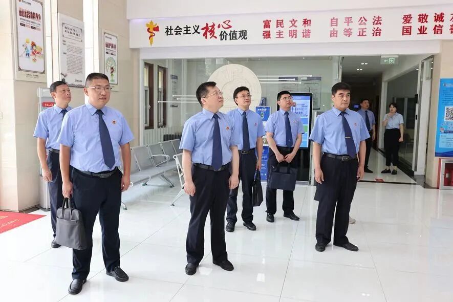 在滕州,考察组一行先后实地参观了滕州市检察院12309检察服务中心、党员教育实践基地、新媒体工作室、数字检察中心、致和苑等场所。