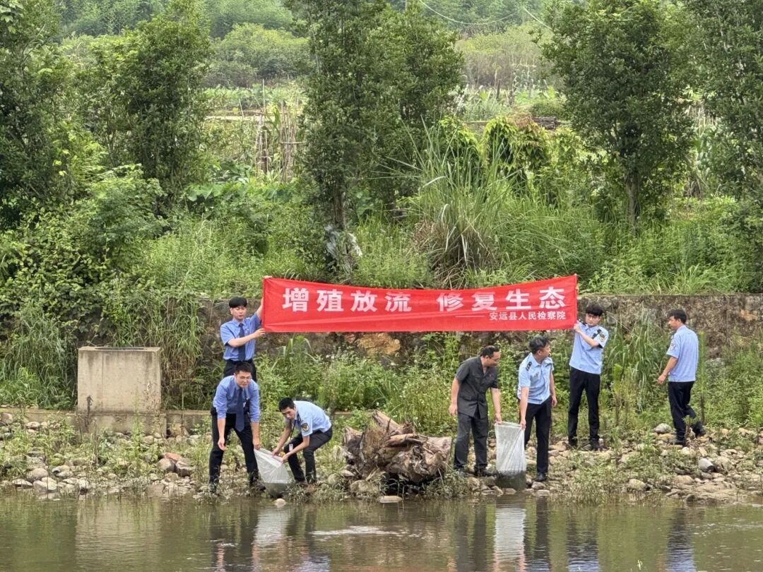 近日,安远县检察院会同县林长办、法院、森林公安开展联合巡林活动,深入重点林区、自然保护区,实地查看森林督查违法图斑整改及司法林生态修复基地建设情况,并对林地生态修复点进行巡林回访,推动“林长+检察长”协作机制深入实施。 6月5日,为修复受损水域生态环境,针对李某某非法捕捞水产品刑事附带民事公益诉讼一案,安远县检察院联合法院、农业农村局、水利局、森林公安等部门,督促当事人在东江源国家湿地公园开展增殖放流活动,向河道投放各类鱼苗2000余尾,有助于净化水质、平衡水域生态链,以实际行动守护绿水青山。