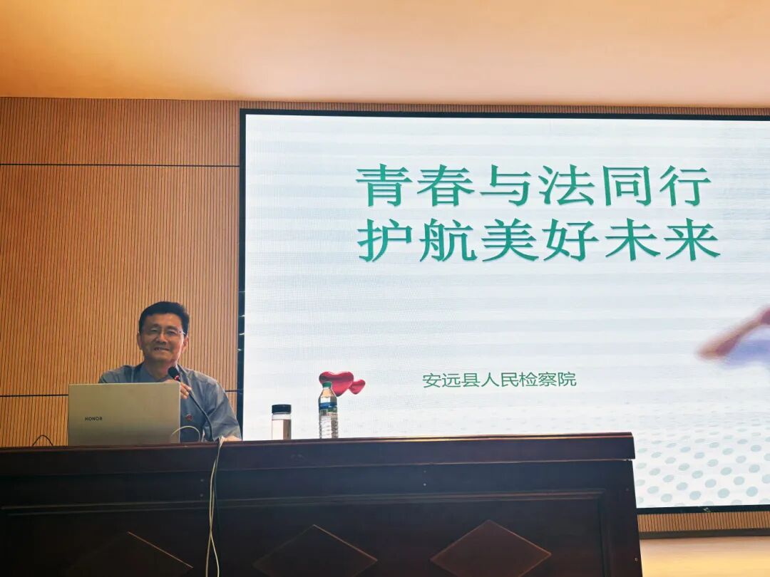 2025年9月1日,山东省滕州市检察院四级高级检察官马兆坡走进安远县实验中学,向全体高一新生讲授了一堂主题为“青春与法同行 护航美好未来”的法治课。